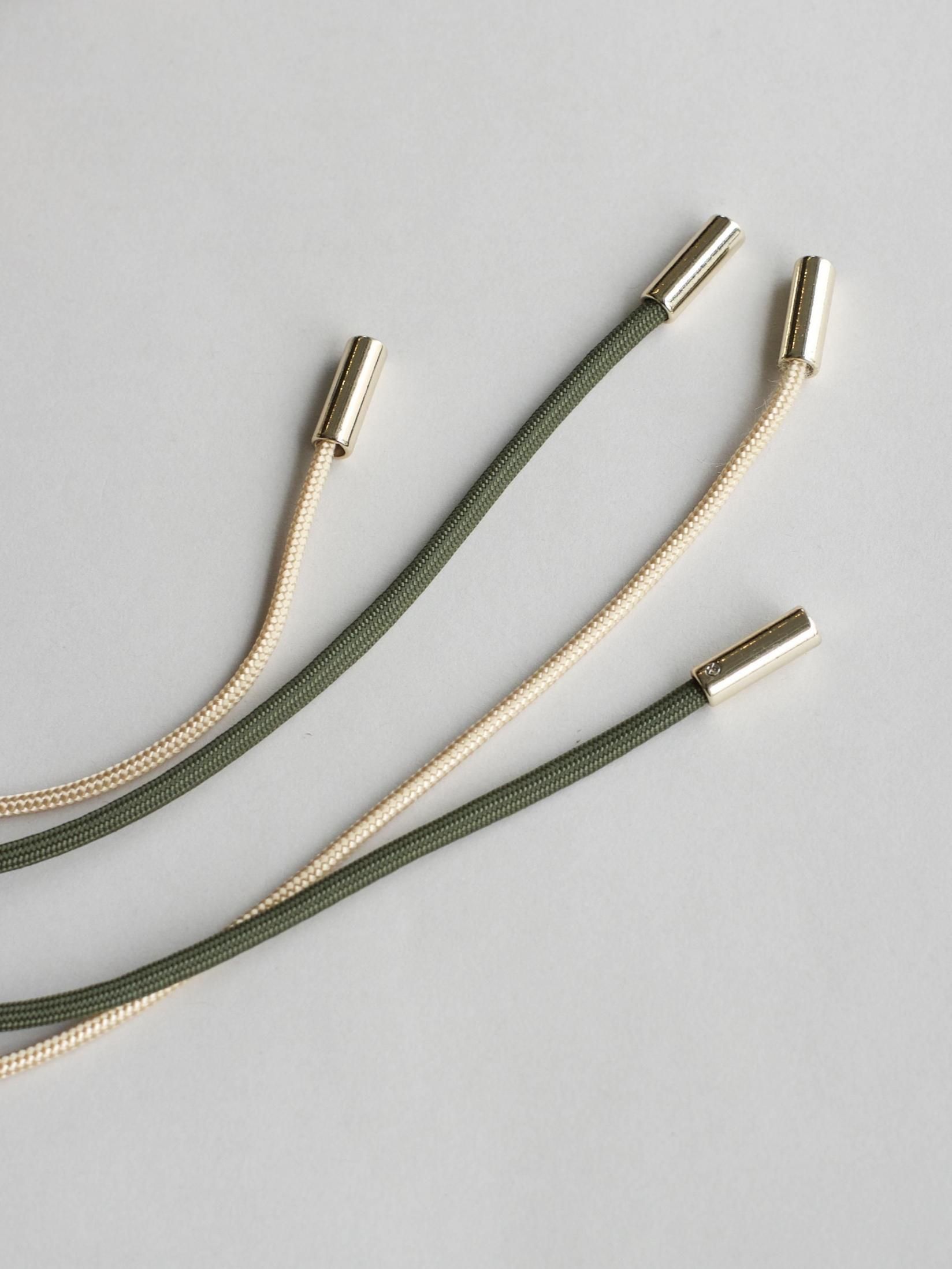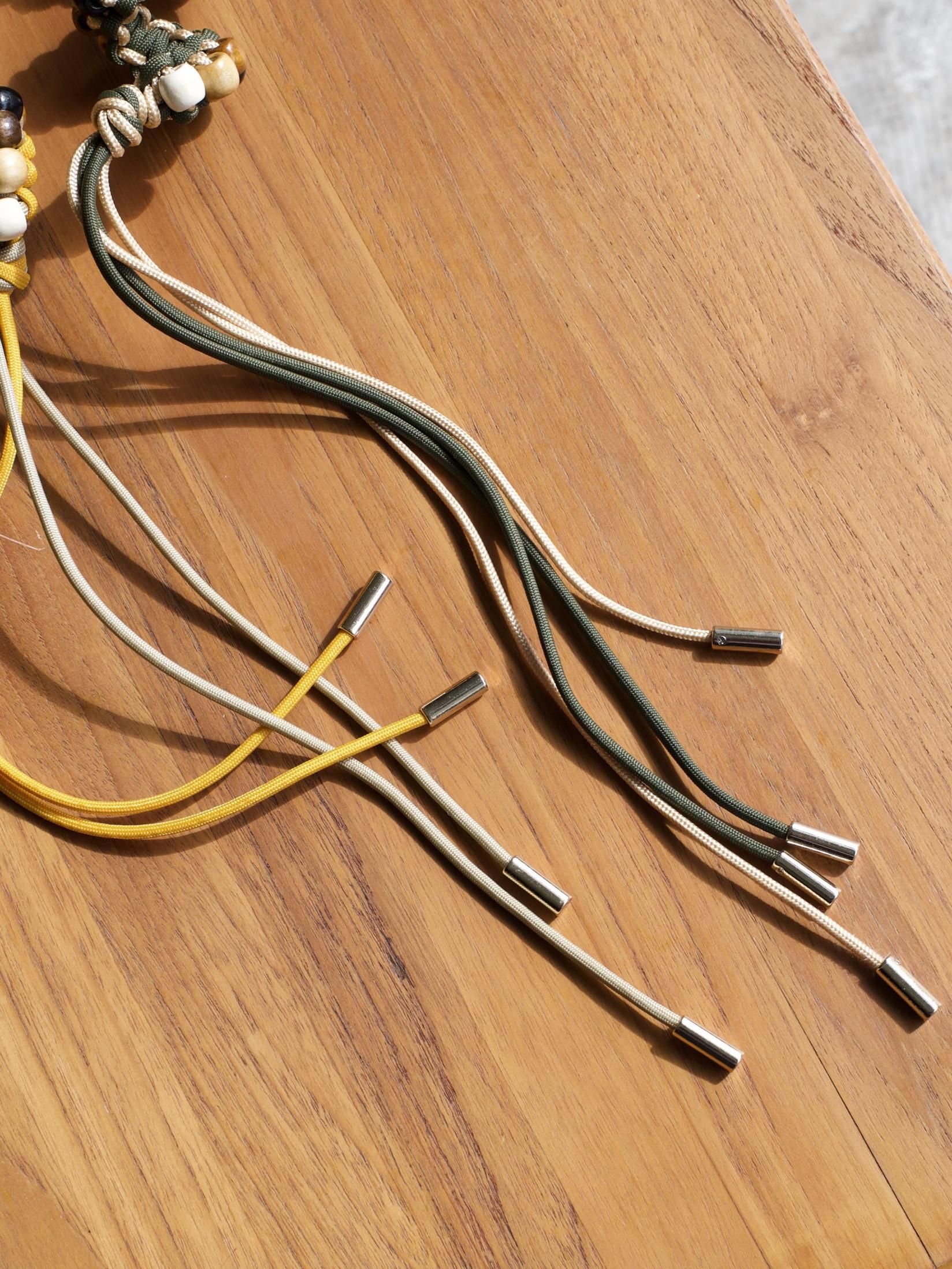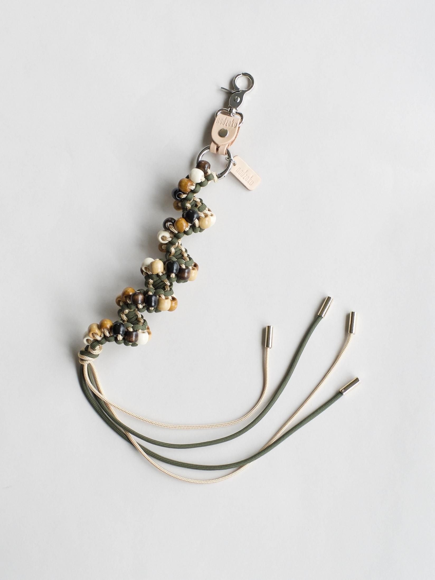 パラコード×木製ビーズ×レザーパーツの3つをミックスしたアクセサリーです。