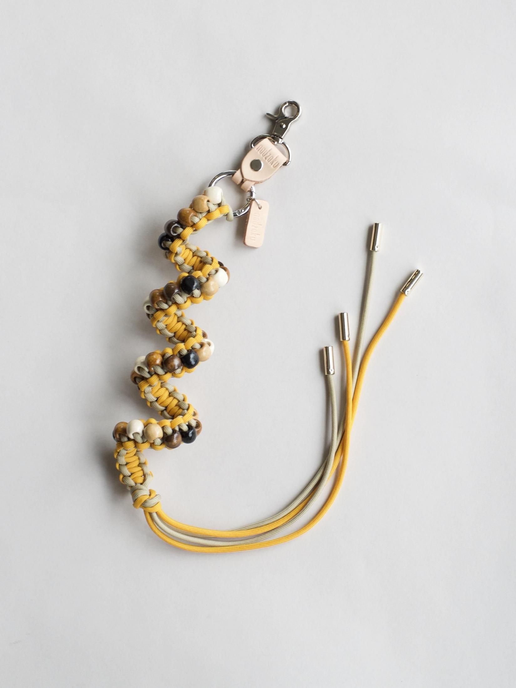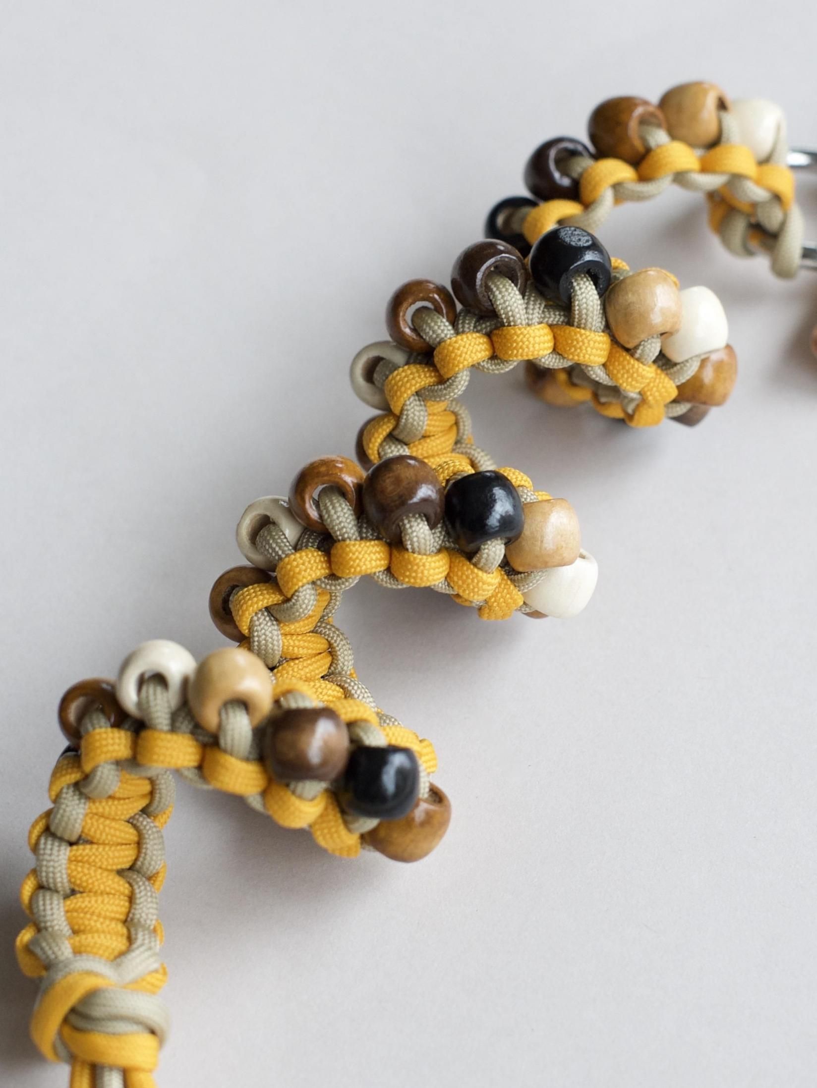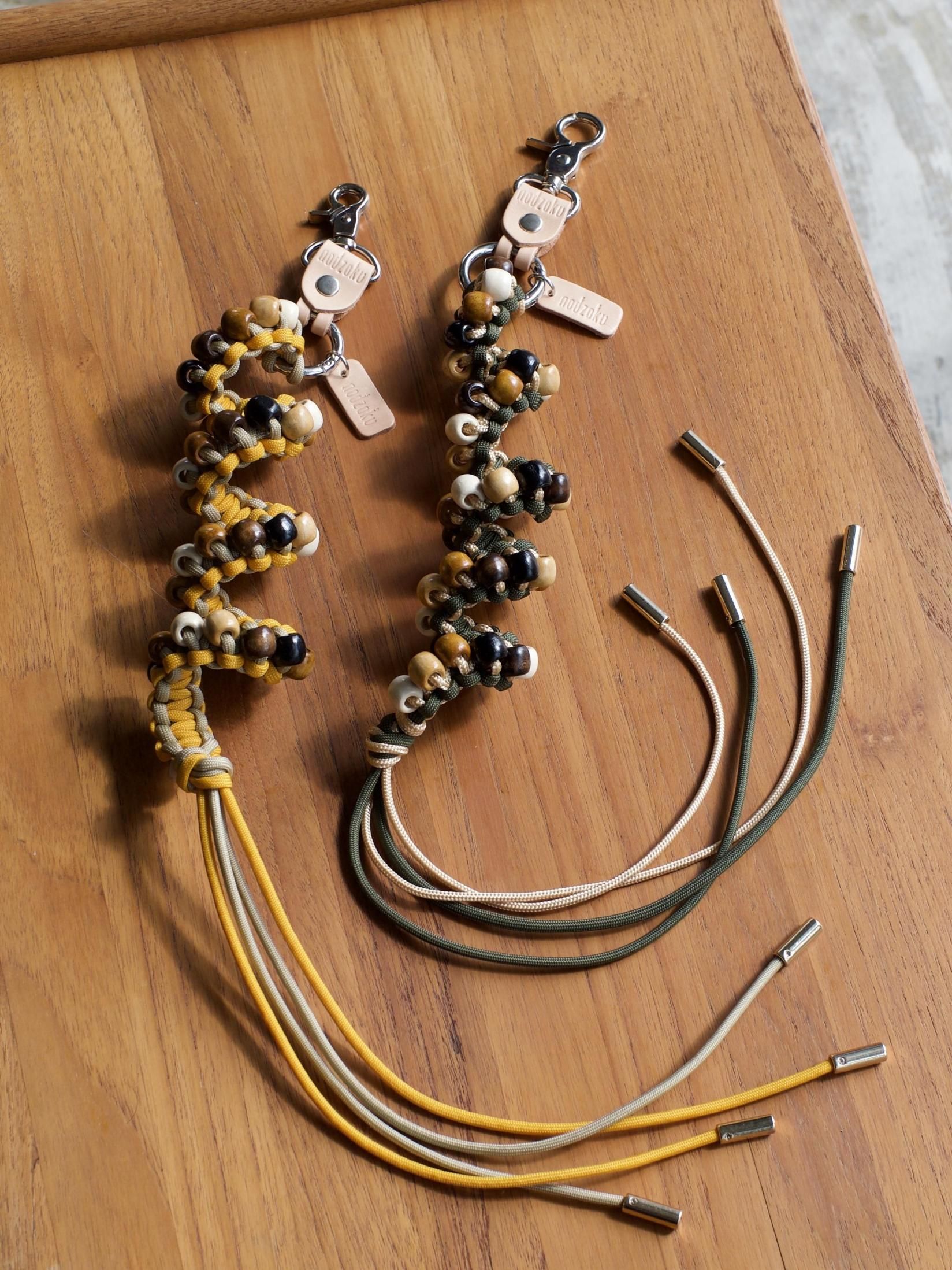 パラコード×木製ビーズ×レザーパーツの3つをミックスしたアクセサリーです。