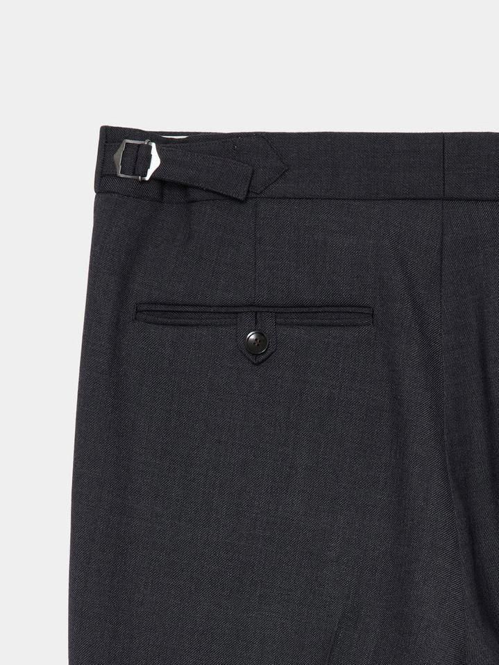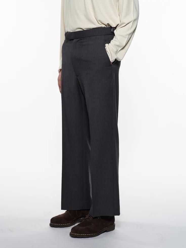 タックのないシンプルなデザインですが、ベルトループを廃した代わりにサイドアジャスターを付与することで、体型に合わせた調節が可能です。