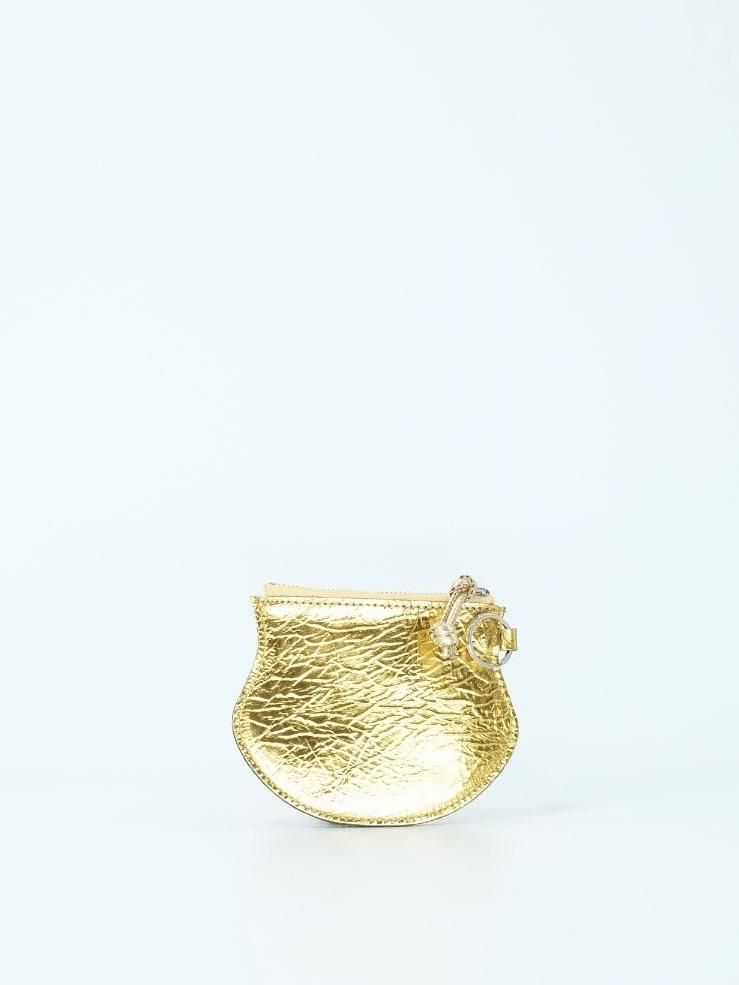 小銭や小さいものを収納できるようなシンプルなアイテムだが前面に重なるように仕切りが2カ所あり、カードを収納することもできる。