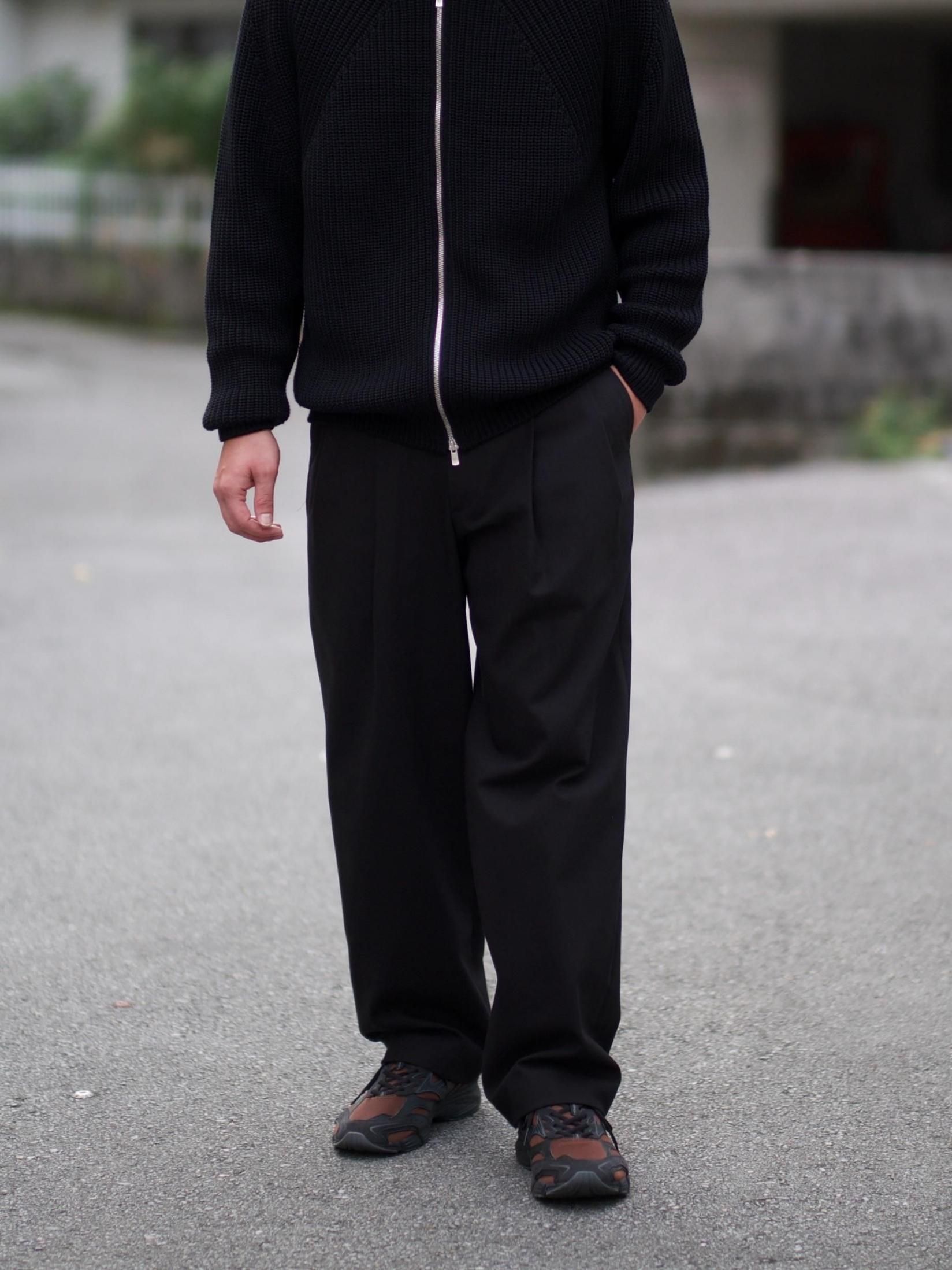 ワイドでモダンなシルエットが魅力の「Double Pleated Easy Trousers」。